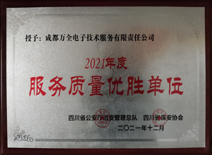 熱烈慶祝成都萬全電子榮獲2021年度“服務質量優勝單位”稱號